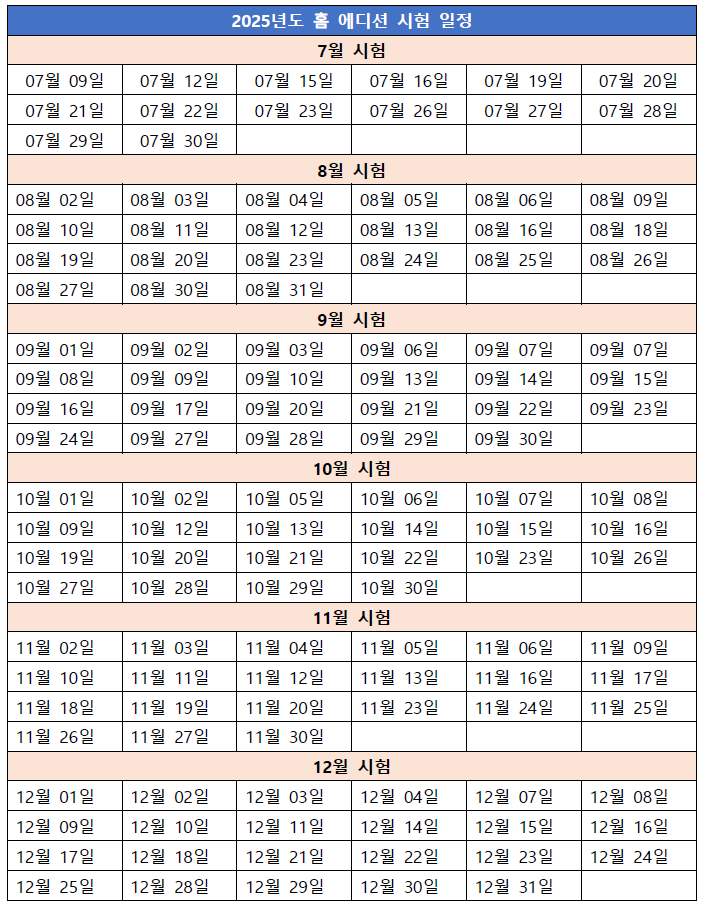 25년 7월부터는 온라인 시험 관리가 강화되어 혼자 토플시험을 볼 수 있는 홈 에디션 시험기회가 많아졌습니다.
