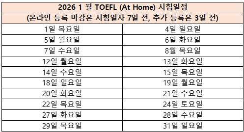 <TOEFL 홈 에디션 시험 일정>