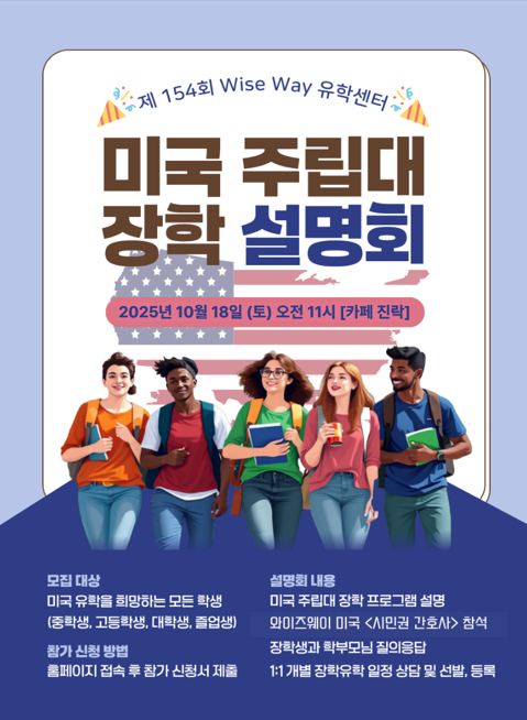| 154회 <장학생선발설명회> ~ 2026년 1월 / 9월 학기 미국 주립대 장학생 15명 모집 선발 (0) | 2025.09.02 |